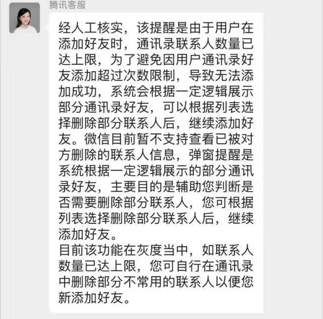 而在近日,微信團(tuán)隊(duì)也向新浪科技證實(shí)了這一消息,根據(jù)微信團(tuán)隊(duì)透露「當(dāng)微信用戶達(dá)到1萬好友上限后,添加新的好友時(shí),會(huì)出現(xiàn)一個(gè)彈窗展示單刪好友,用戶可選擇刪除這些單刪好友后繼續(xù)添加好友」