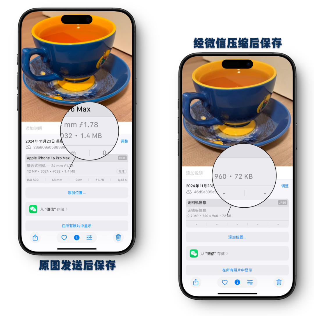 在數(shù)碼博主「科技獸」的實(shí)測(cè)中,原照片在1.4MB被微信壓縮后僅有72KB,圖片被壓縮了近20倍,不過(guò)圖片素材不同壓縮體積大小也會(huì)存在差異,但整體而言能夠極大地釋放用戶存儲(chǔ)空間,減少聊天中的原圖、原視頻對(duì)空間的占用。