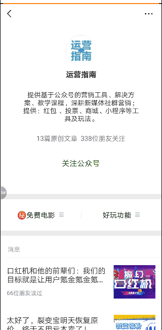 粉絲首次關(guān)注公眾號,就能收到一條圖文,標(biāo)題、摘要、頭圖、鏈接都可以自定義,粉絲昵稱、性別、頭像等參數(shù)可自動獲取。