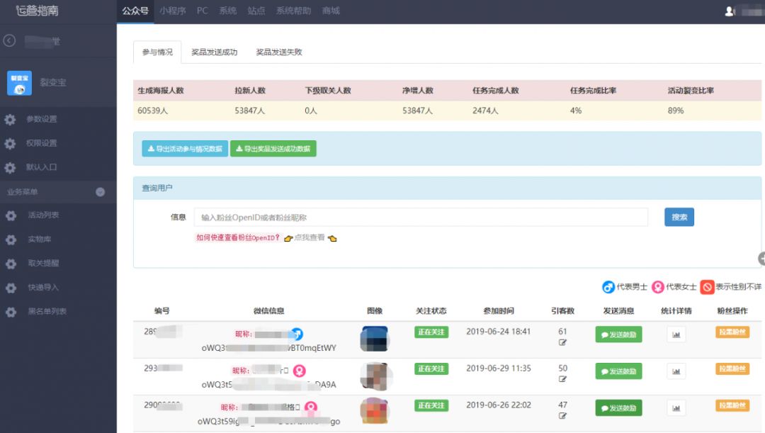 裂變寶適用于認(rèn)證訂閱號和認(rèn)證服務(wù)號,是專門針對微信公眾號的漲粉工具,需要以活動為介質(zhì),用獎品來吸引粉絲。