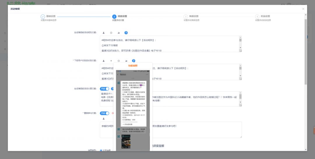 活動靠一張海報來傳播,裂變寶可以在這張海報上生成參數(shù)二維碼,通過掃描某用戶海報上二維碼關(guān)注公眾號的朋友,都算是為他助力,助力的人數(shù)達(dá)到設(shè)定的值,就能領(lǐng)取獎品。