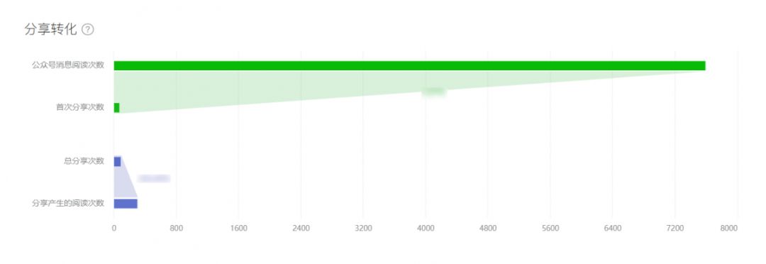 分享轉(zhuǎn)化是指這篇文章二次傳播帶來(lái)的閱讀量,這里我們主要關(guān)注的是『首次分享次數(shù)』,『分享總次數(shù)』和『分享產(chǎn)生的閱讀次數(shù)』。