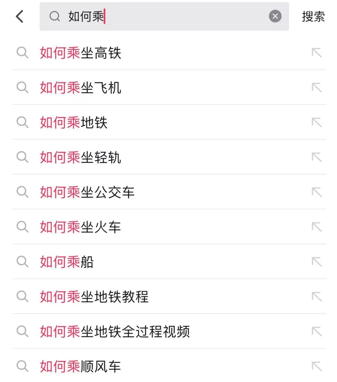 各位可以打開(kāi)百度或者抖音,搜索如何乘坐相關(guān)的關(guān)鍵詞,就會(huì)出現(xiàn)一些推薦的內(nèi)容,這就代表這些內(nèi)容,之前都有用戶(hù)搜索過(guò)。