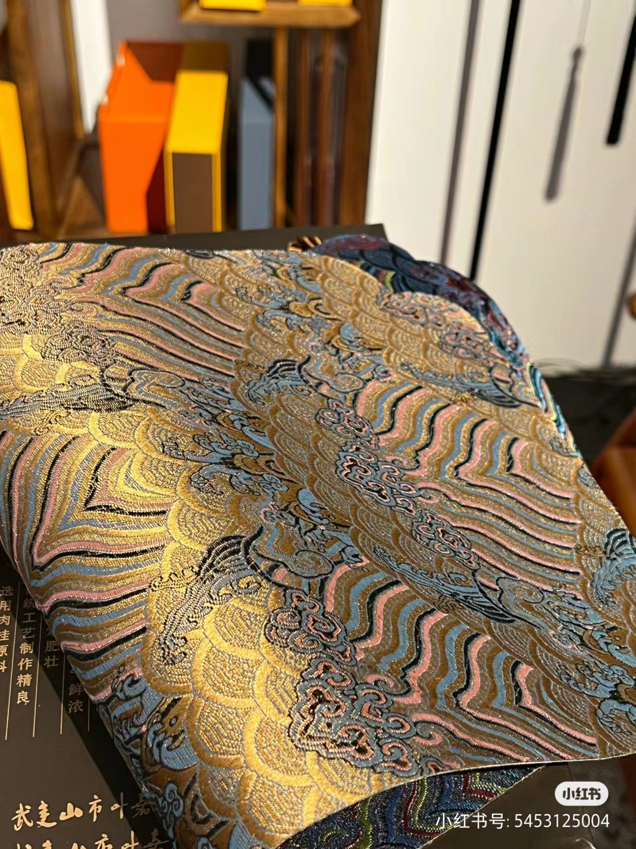 云錦:云錦是中國傳統(tǒng)的絲綢工藝品,源于中國戰(zhàn)國時期,以南京云錦最為著名。云錦的主要特點是使用提花木機和手工織造,其圖案豐富多彩,有線、有線、有云、有山水、有花鳥等,色彩鮮艷,富麗堂皇,被譽為“東方藝術瑰寶”。
