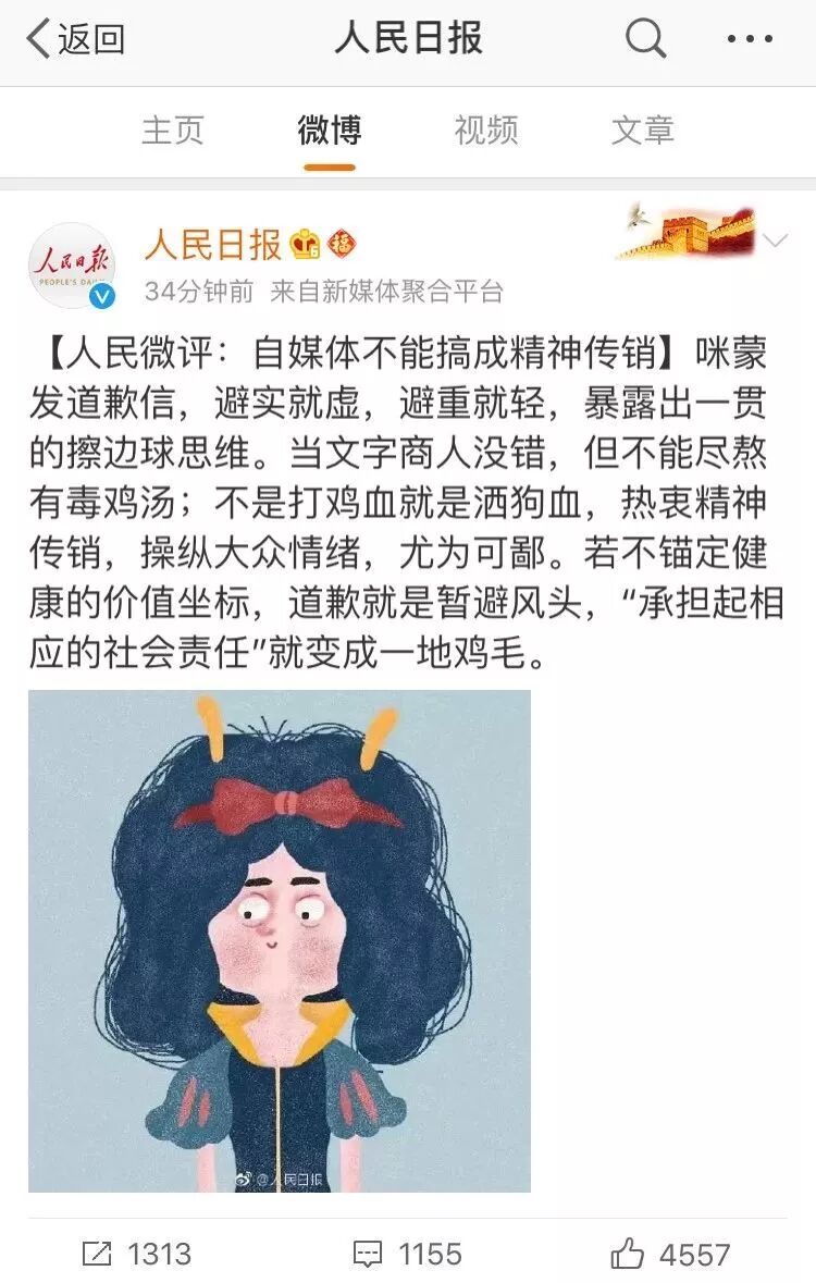 ▲人民日?qǐng)?bào)微博點(diǎn)名咪蒙