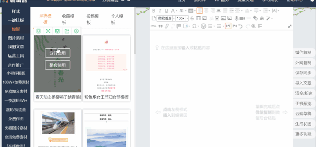 操作:模板-系統(tǒng)模板-選中自己喜歡的模板-整套使用or分開(kāi)使用-填充自己的內(nèi)容。