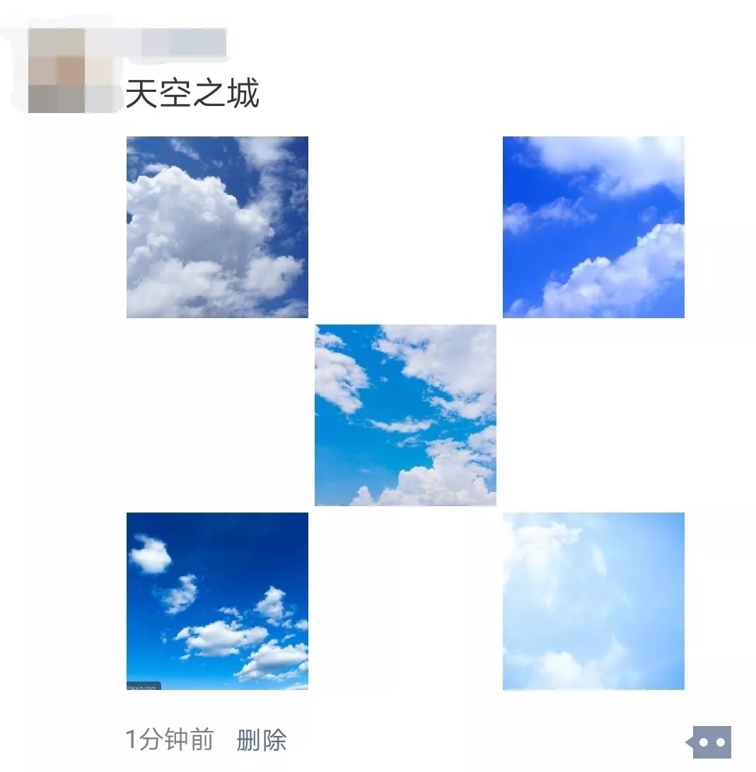 然后如果我們要做出這種效果的話,需要保存四張空白圖,然后在發(fā)朋友圈時(shí)依次在第2、4、6、8這四張圖片的位置上選擇空白圖這樣發(fā)的朋友圈就會(huì)是這種留白效果了