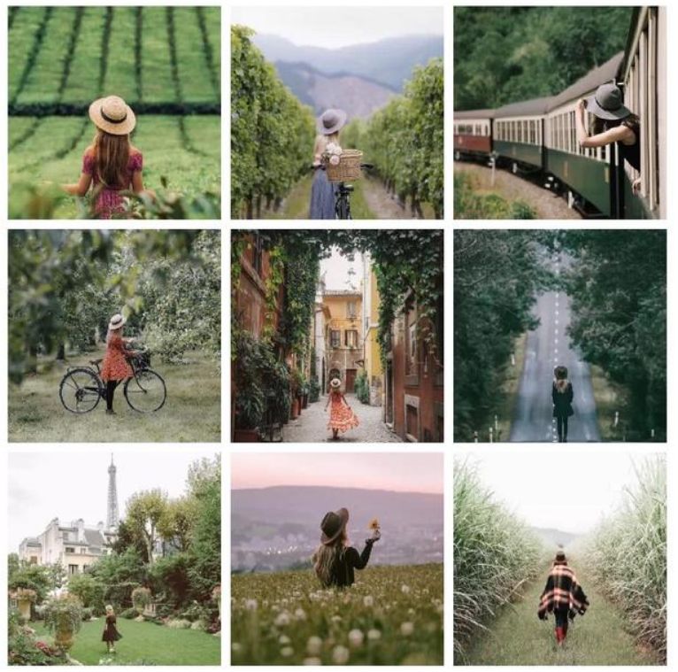可以是統(tǒng)一色調(diào)的風(fēng)景圖,也可以是人物穿著同一色系風(fēng)格的服裝