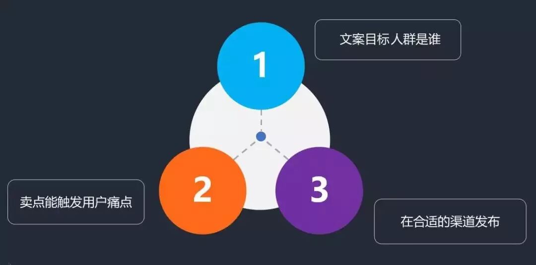 找渠道只是開始,我們需要不斷驗(yàn)證不同渠道的效果,以及類似渠道不同文案的效果,可復(fù)制可持續(xù)的去寫文案,一般都建議三個(gè)步驟: