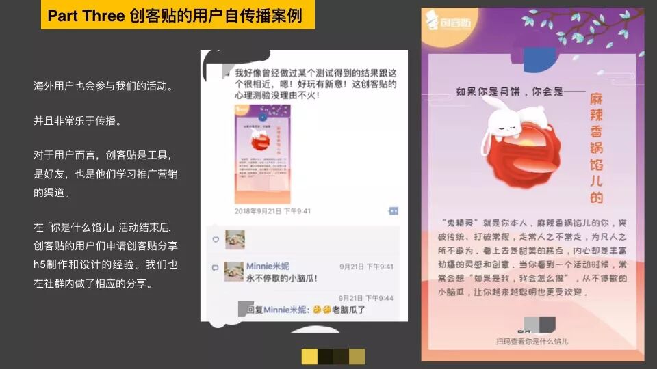 充滿趣味的結(jié)果和人的性格相結(jié)合,獲得了用戶的共鳴和認(rèn)可。當(dāng)時(shí)我們的結(jié)果中,有珍珠奶茶餡兒、鮮花餡兒、冰淇凌餡兒和榴蓮餡兒、麻辣香鍋餡兒等特殊的月餅餡兒結(jié)果,代表著不同的性格。