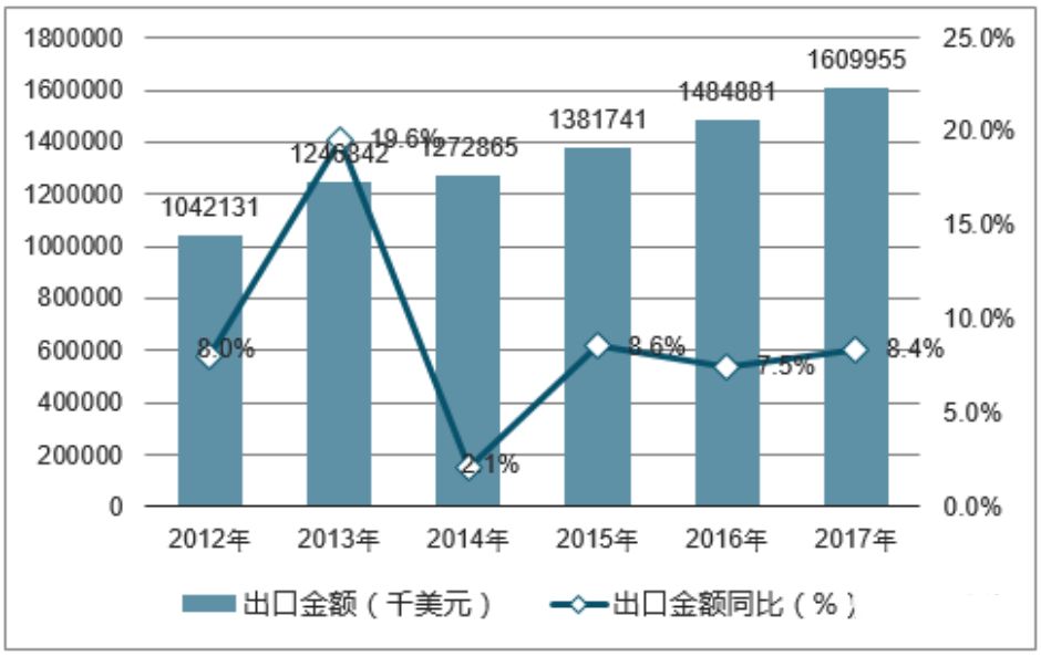 2017年當(dāng)年出口金額是160995.5萬(wàn)美元。平均4533美元/噸,2.26美元/斤,按照2017年的匯率來(lái)算(6.8)差不多15.1元/斤。