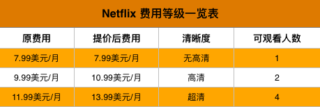 我們先來看下 Netflix 的會(huì)員權(quán)益,主要分為三個(gè)等級(jí):
