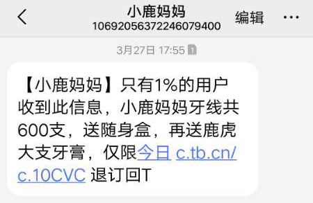 比如我曾經(jīng)收到過一條很機(jī)智的短信推送:只有 1% 的用戶能收到此信息 XXX,讓我感覺到自己享受到了別人沒有享受到的待遇。