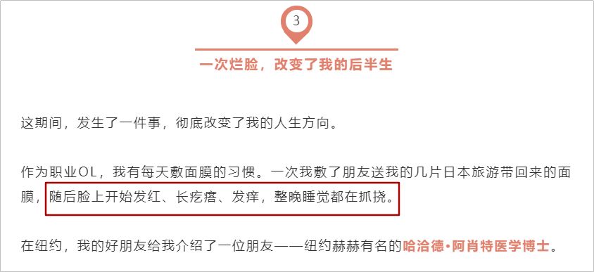 直到這里,文章才來(lái)到第三部分:指出需求。指出目前護(hù)膚品行業(yè),便宜的產(chǎn)品不安全,安全的產(chǎn)品太貴,確實(shí)是很多女性的需求。