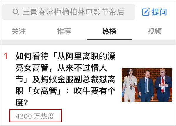 從 2 月 14 日情人節(jié)開始,阿里、阿里離職“女高管”這些關(guān)鍵詞頻頻出現(xiàn)在微博、知乎、微信等渠道上,本以為是互聯(lián)網(wǎng)大廠痛失猛將的戲碼,點(diǎn)開后才發(fā)現(xiàn)是這位“女高管”王晗蹭阿里熱度賣面膜,結(jié)果慘遭揭穿真相。