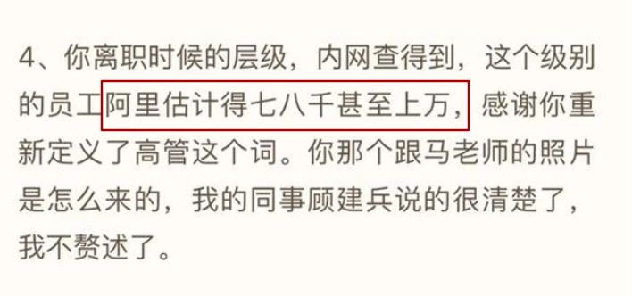 然而螞蟻金服集團(tuán)副總裁陳亮很快撕破了“女高管”的身份,表示王晗離職時(shí)的層級(jí)可以在內(nèi)網(wǎng)查得到,她這個(gè)級(jí)別的員工阿里估計(jì)得七八千甚至上萬(wàn)。