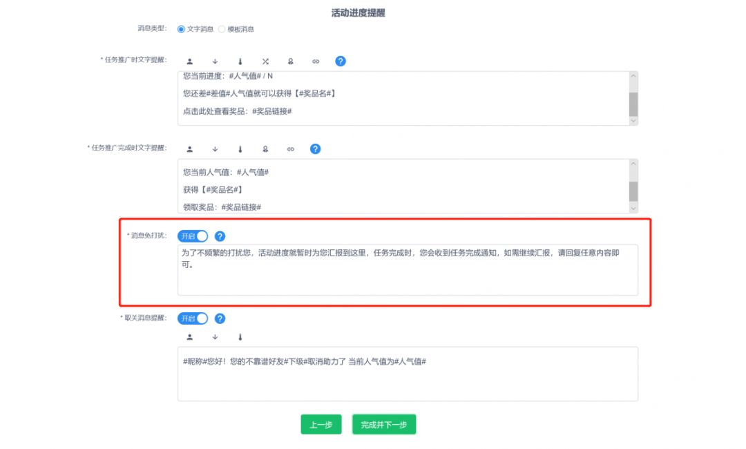 很多運(yùn)營(yíng)者在做漲粉裂變活動(dòng)時(shí)很苦惱,因?yàn)槿藲庵堤崾镜拇嬖?,影響了粉絲參與度。運(yùn)營(yíng)指南裂變寶的開發(fā)者研究出消息免打擾功能。微信最怕影響用戶體驗(yàn)的事情發(fā)生,運(yùn)營(yíng)指南裂變寶的開發(fā)者研究出消息免打擾功能,完美的解決了這一問題。